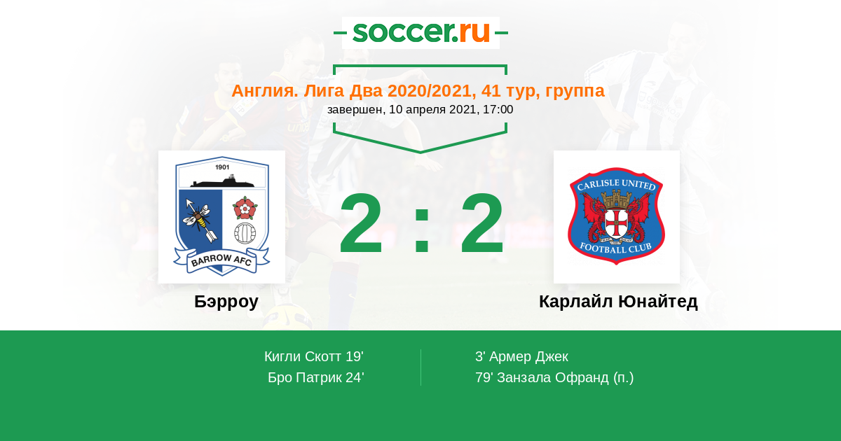 Бэрроу - Карлайл Юнайтед: обзор матча 10 апреля 2021