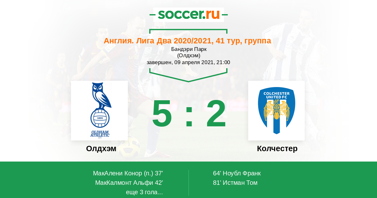 Олдхэм - Колчестер: обзор матча 9 апреля 2021