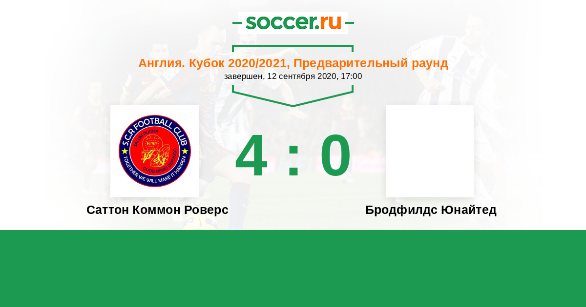 Саттон Коммон Роверс - Бродфилдс Юнайтед: обзор матча 12 сентября 2020