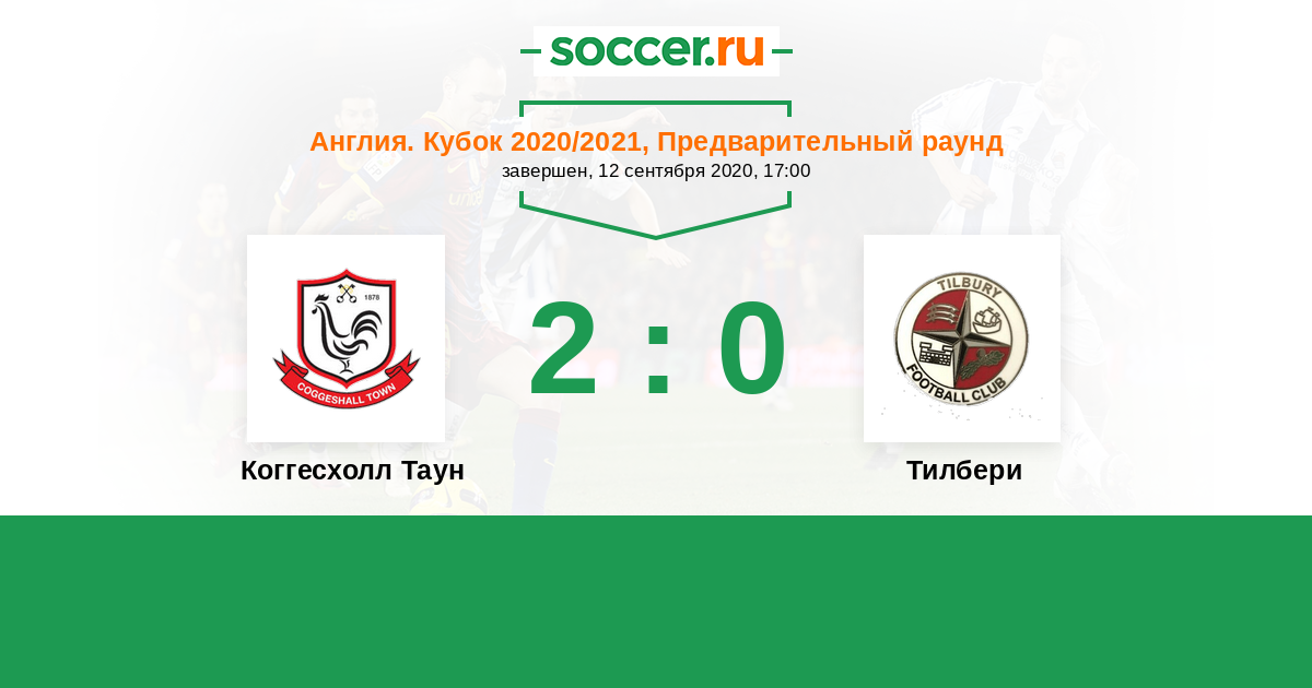 Коггесхолл Таун - Тилбери: обзор матча 12 сентября 2020