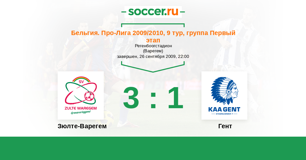 Зюлте-Варегем - Гент: обзор матча 26 сентября 2009