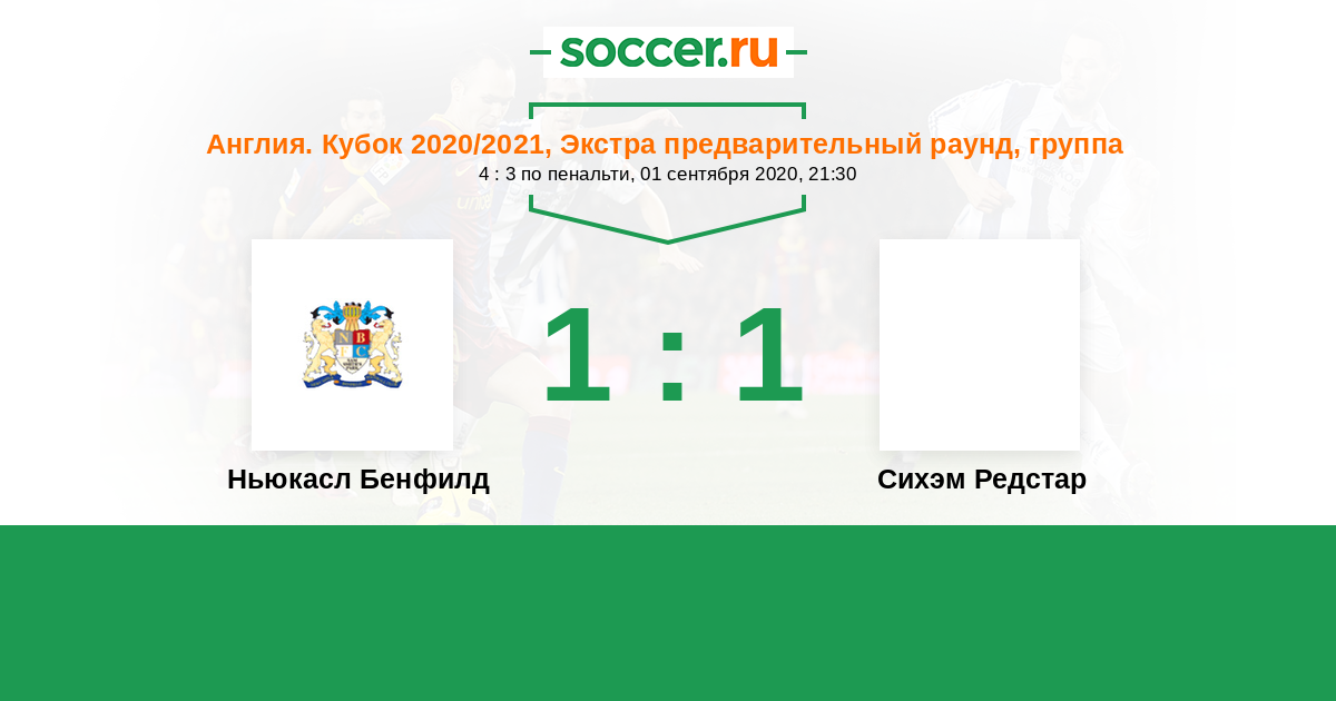 Ньюкасл Бенфилд - Сихэм Редстар: обзор матча 1 сентября 2020