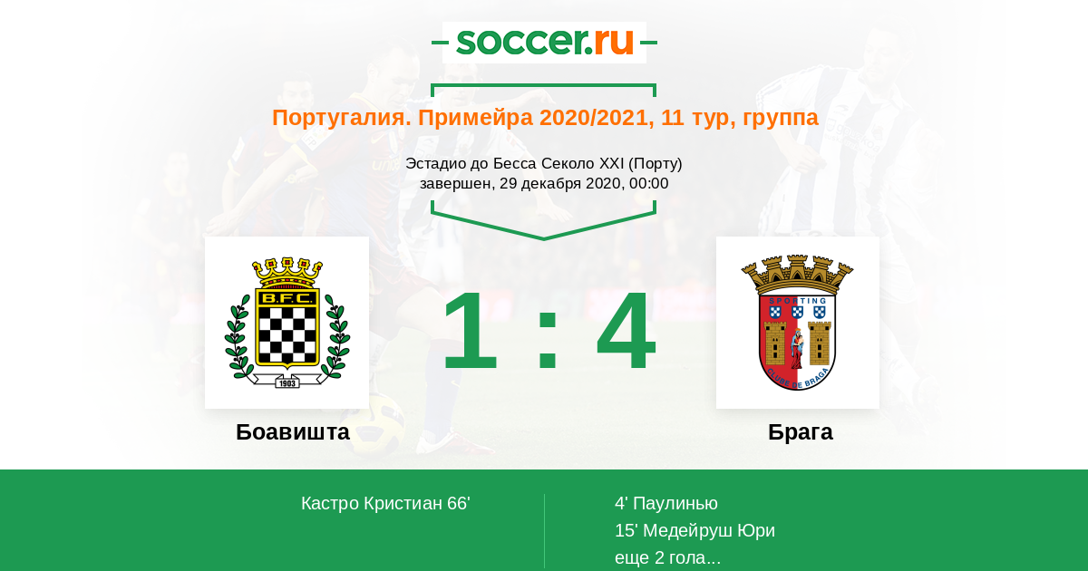 Боавишта - Брага: обзор матча 29 декабря 2020