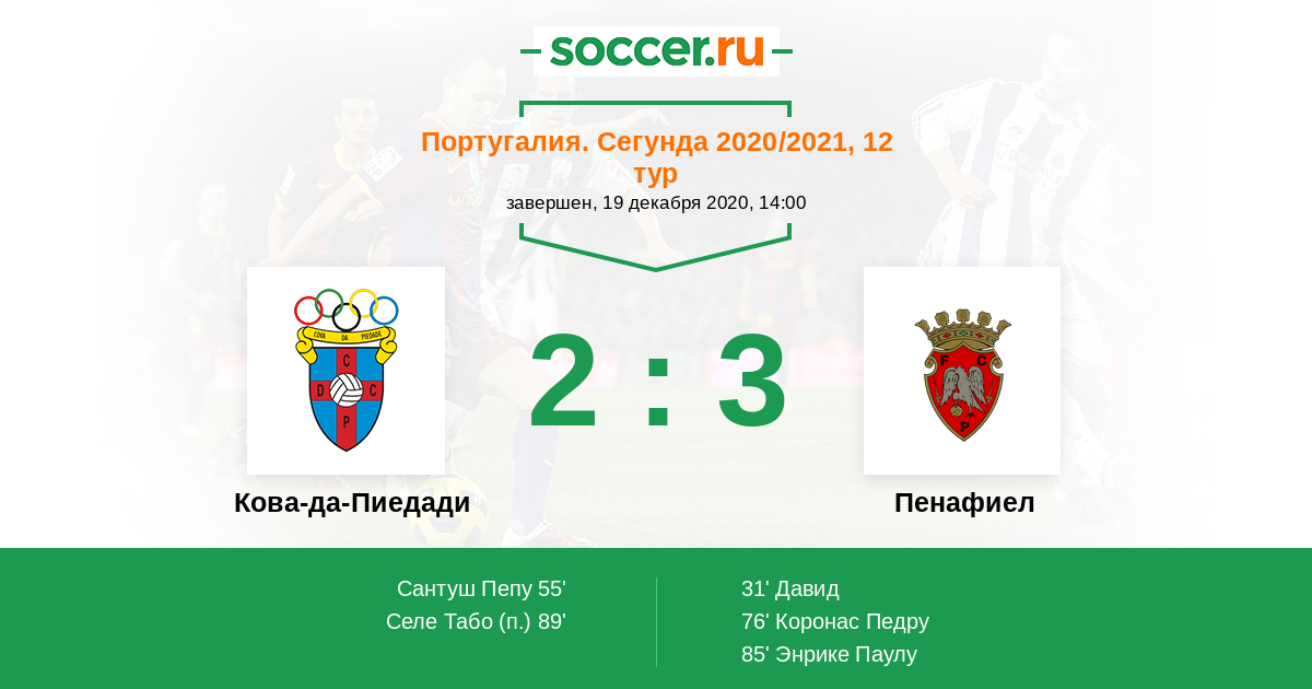 Кова-да-Пиедади - Пенафиел: обзор матча 19 декабря 2020