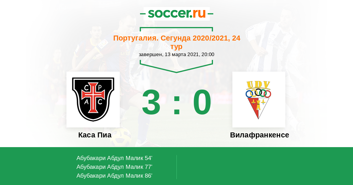 Каса Пиа - Вилафранкенсе: обзор матча 13 марта 2021