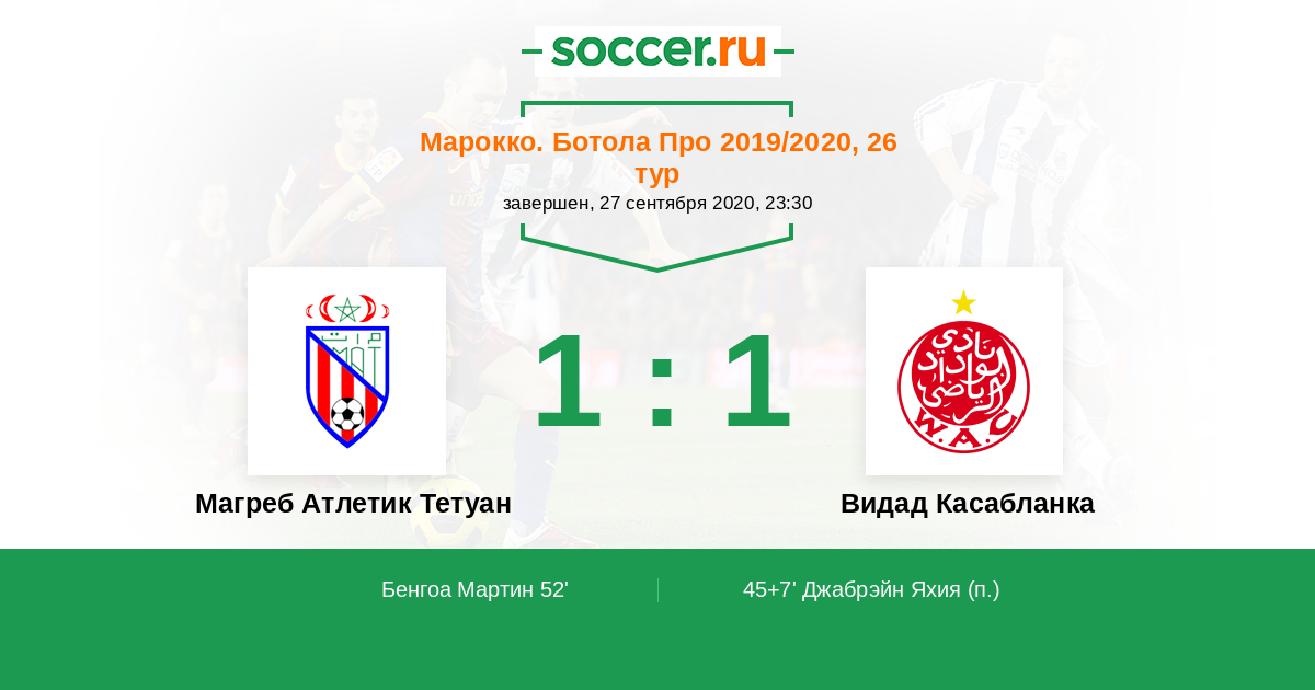 Магреб Атлетик Тетуан - Видад Касабланка: обзор матча 27 сентября 2020