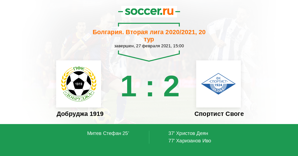 Добруджа 1919 - Спортист Своге: обзор матча 27 февраля 2021