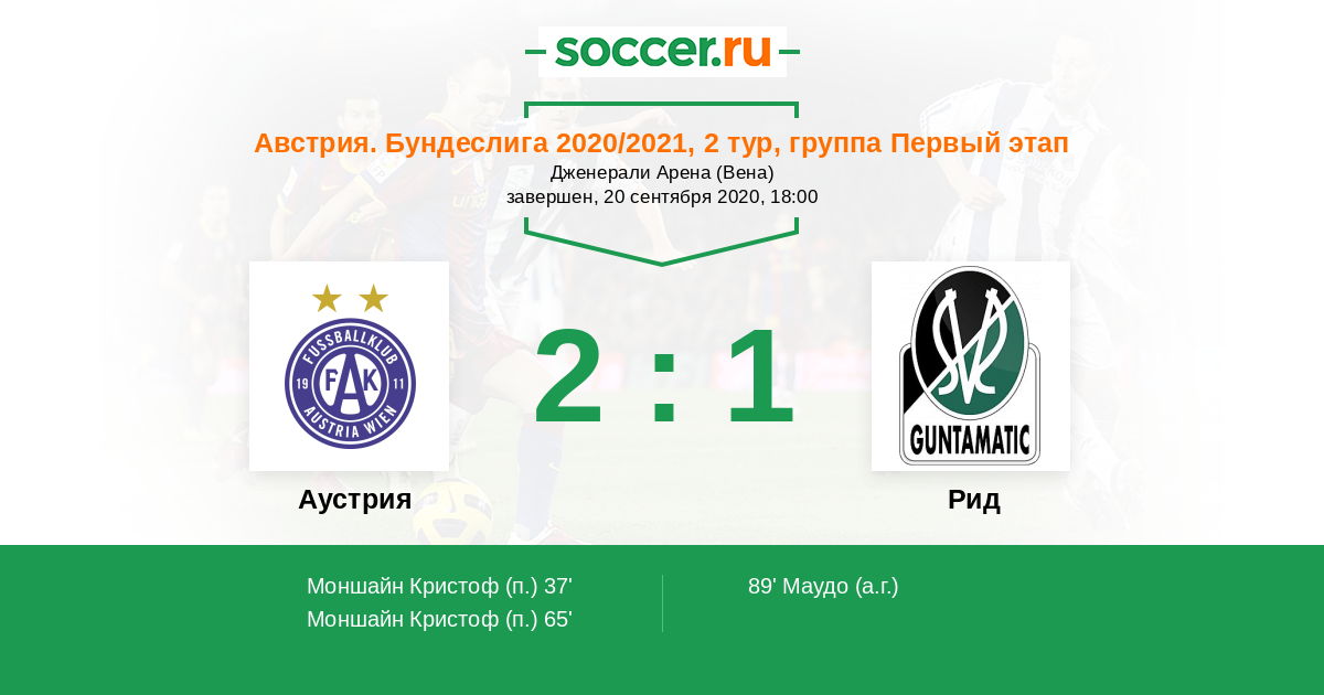 Аустрия - Рид: обзор матча 20 сентября 2020