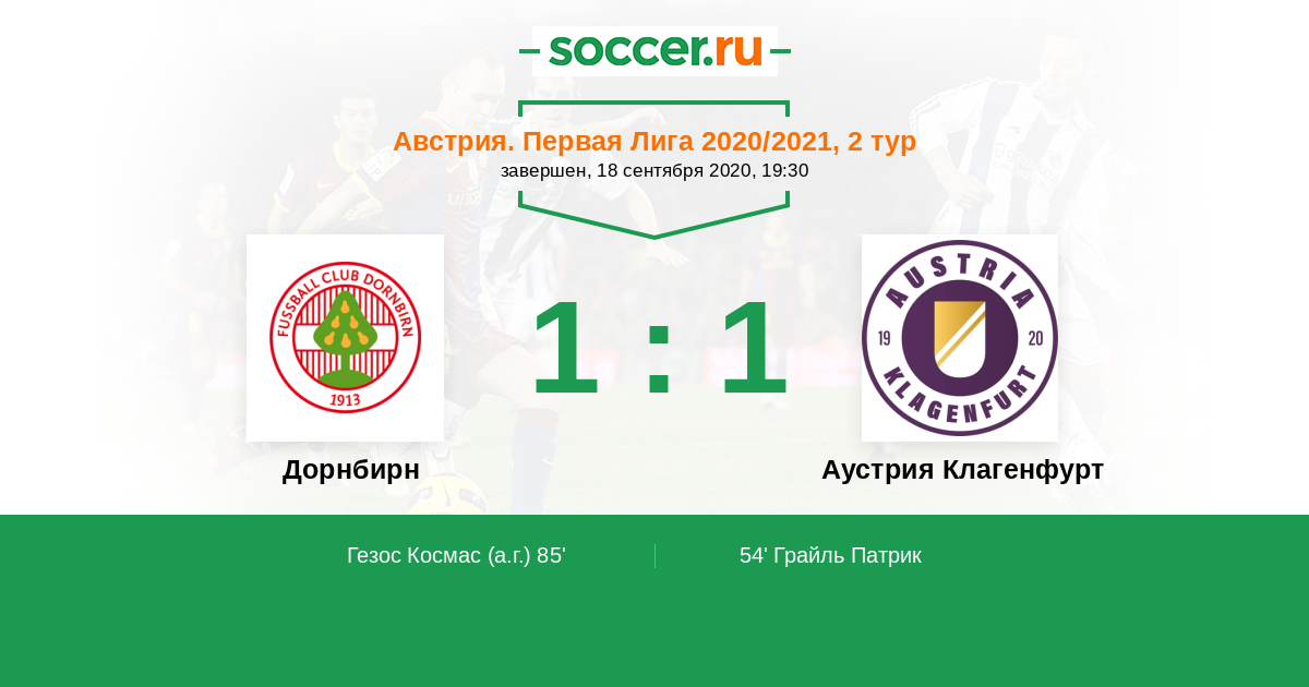 Дорнбирн - Аустрия Клагенфурт: обзор матча 18 сентября 2020