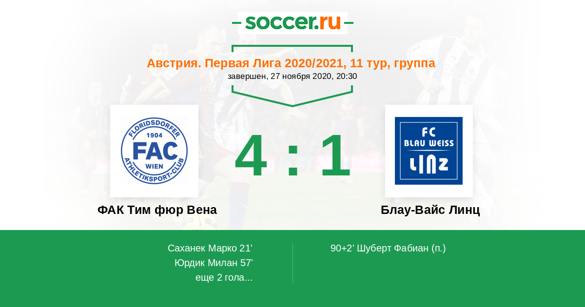 ФАК Тим фюр Вена - Блау-Вайс Линц: обзор матча 27 ноября 2020