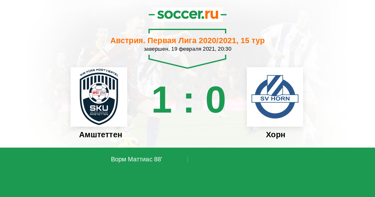 Амштеттен - Хорн: обзор матча 19 февраля 2021