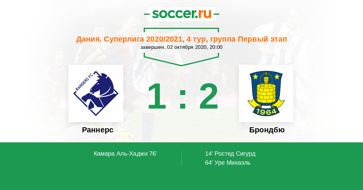 Раннерс - Брондбю: обзор матча 2 октября 2020