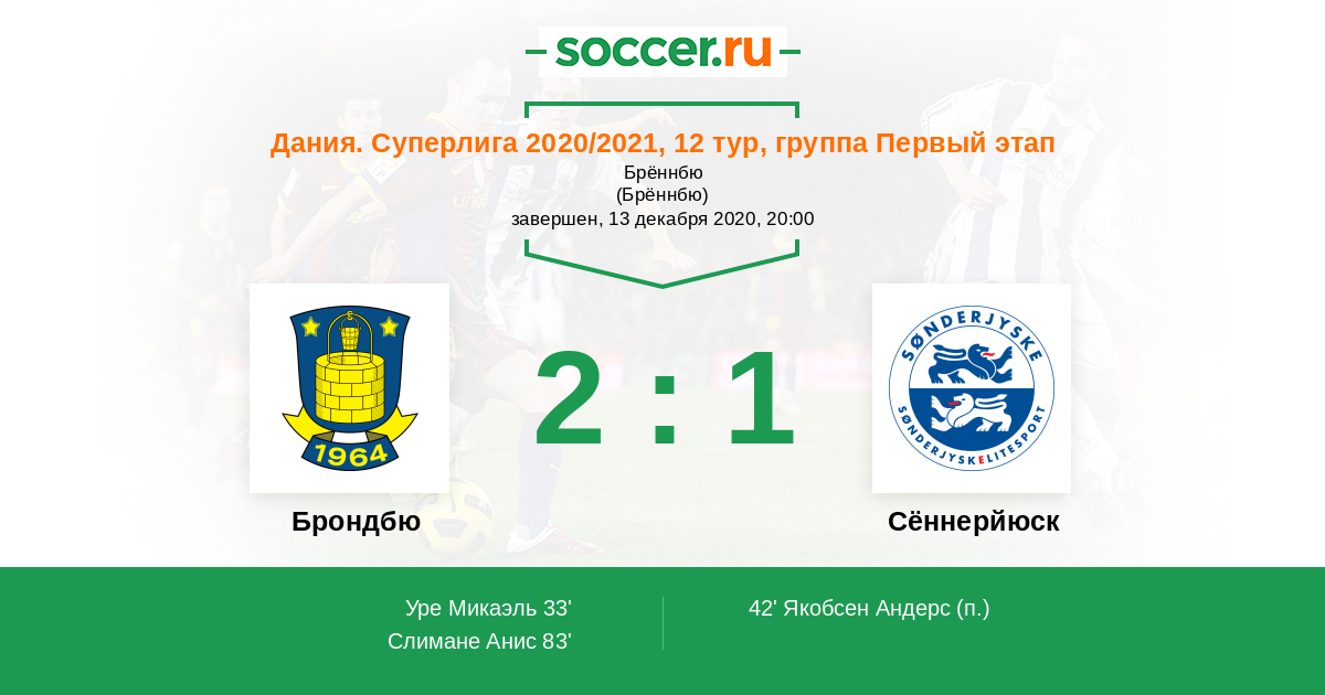Брондбю - Сённерйюск: обзор матча 13 декабря 2020