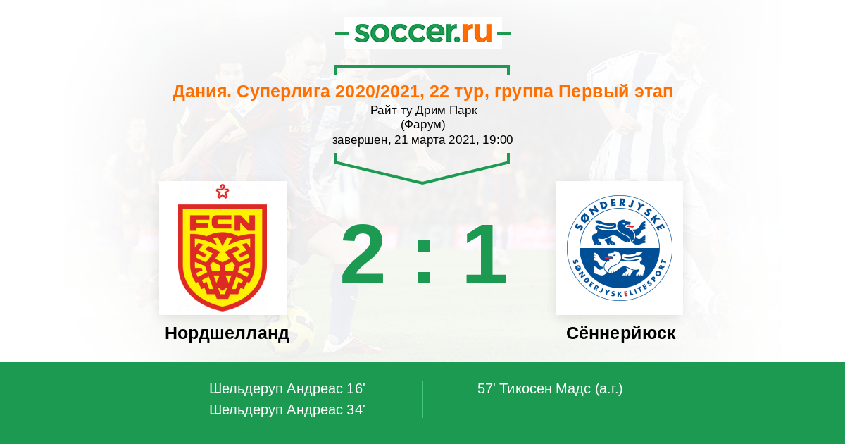 Нордшелланд - Сённерйюск: обзор матча 21 марта 2021