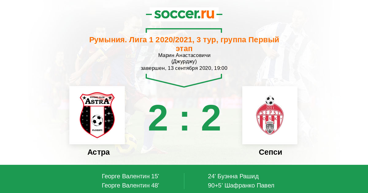 Астра - Сепси: обзор матча 13 сентября 2020