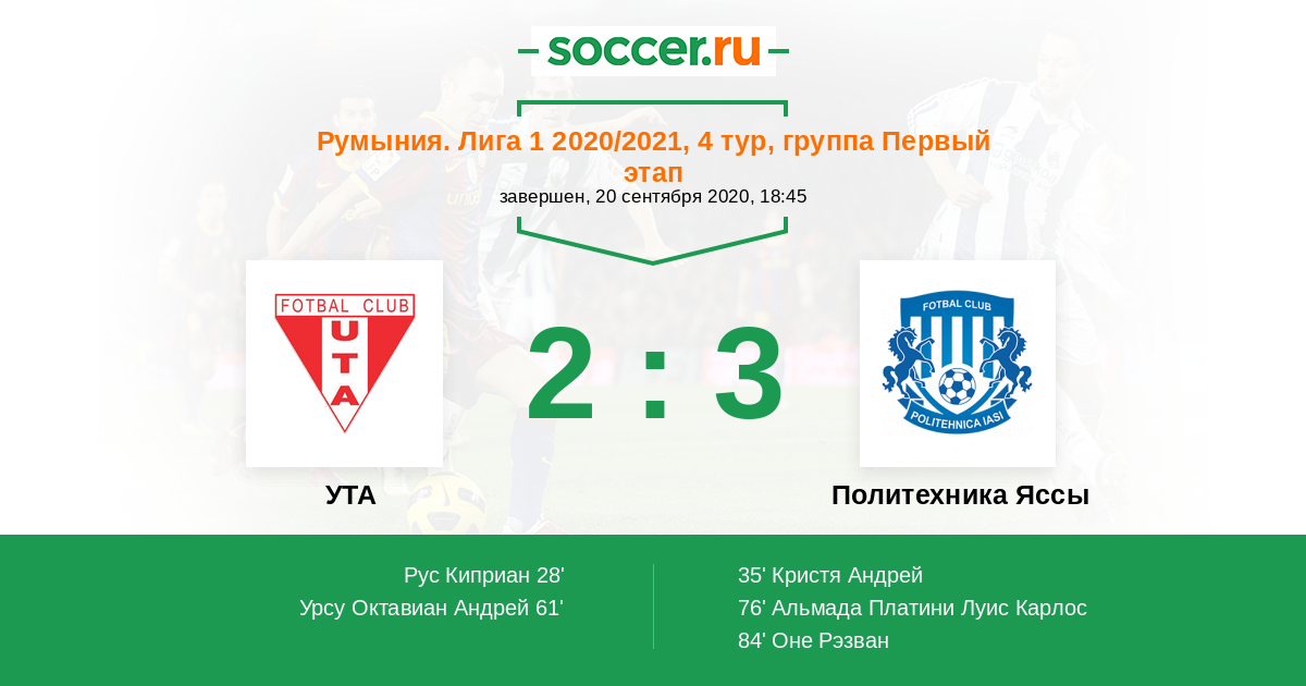 УТА - Политехника Яссы: обзор матча 20 сентября 2020