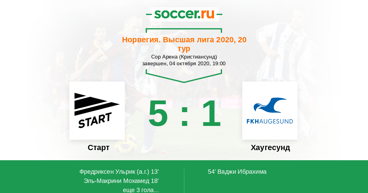 Старт - Хаугесунд: обзор матча 4 октября 2020