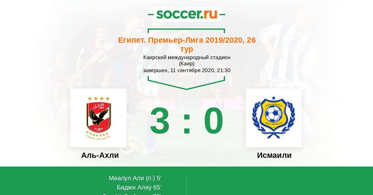 Аль-Ахли - Исмаили: обзор матча 11 сентября 2020