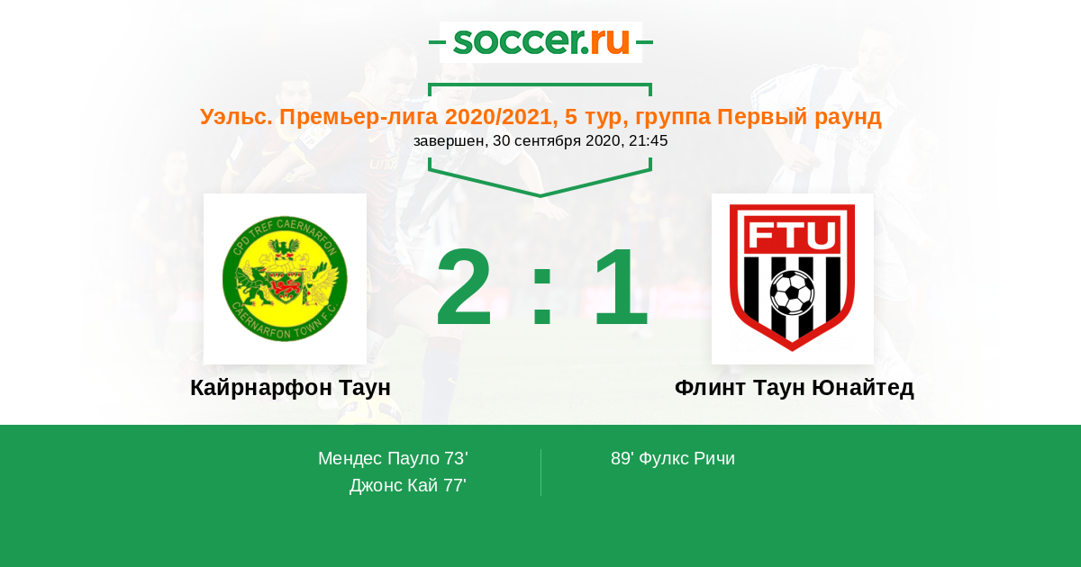 Кайрнарфон Таун - Флинт Таун Юнайтед: обзор матча 30 сентября 2020