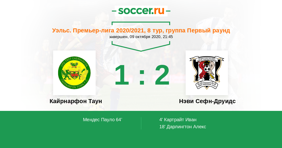 Кайрнарфон Таун - Нэви Сефн-Друидс: обзор матча 9 октября 2020