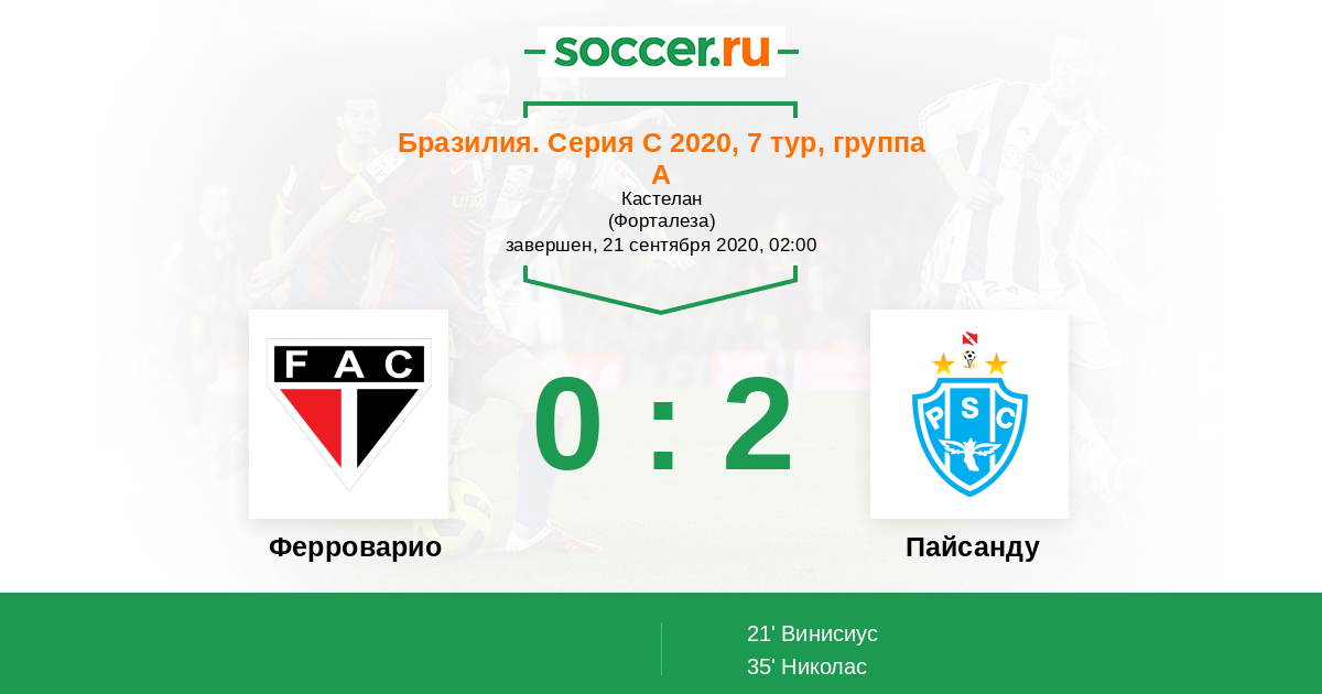 Ферроварио - Пайсанду: обзор матча 21 сентября 2020