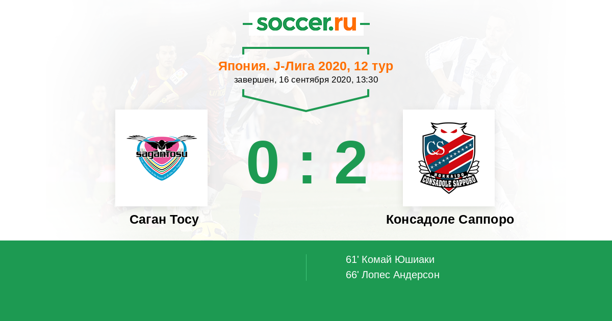 Саган Тосу - Консадоле Саппоро: обзор матча 16 сентября 2020