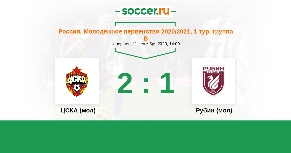 ЦСКА (мол) - Рубин (мол): обзор матча 11 сентября 2020