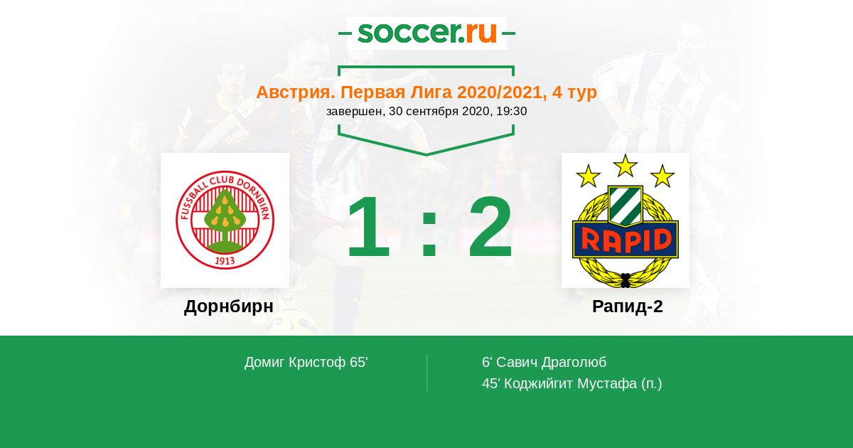 Дорнбирн - Рапид-2: обзор матча 30 сентября 2020