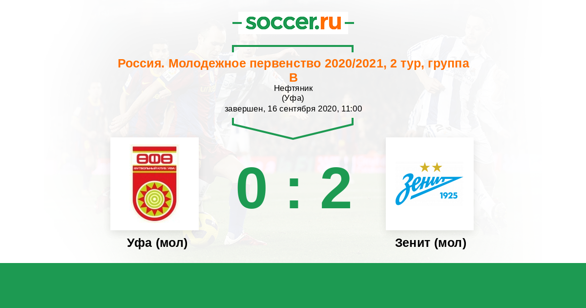 Уфа (мол) - Зенит (мол): обзор матча 16 сентября 2020