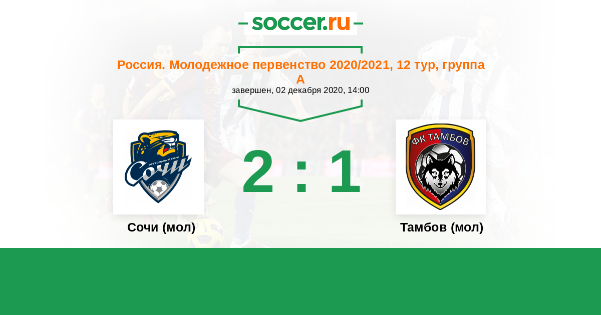 Сочи (мол) - Тамбов (мол): обзор матча 2 декабря 2020