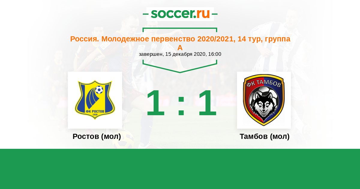 Ростов (мол) - Тамбов (мол): обзор матча 15 декабря 2020