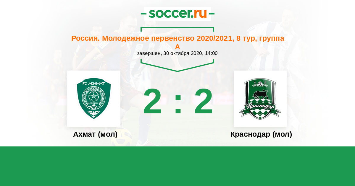 Ахмат (мол) - Краснодар (мол): обзор матча 30 октября 2020
