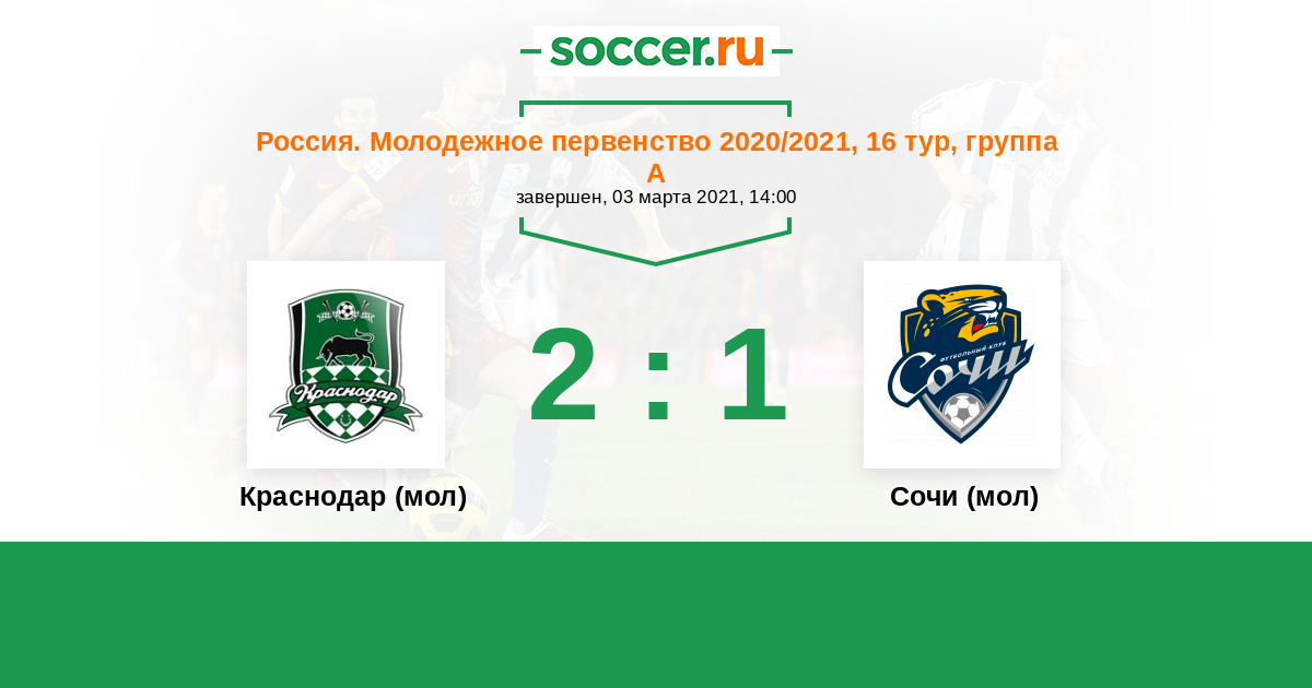 Краснодар (мол) - Сочи (мол): обзор матча 3 марта 2021
