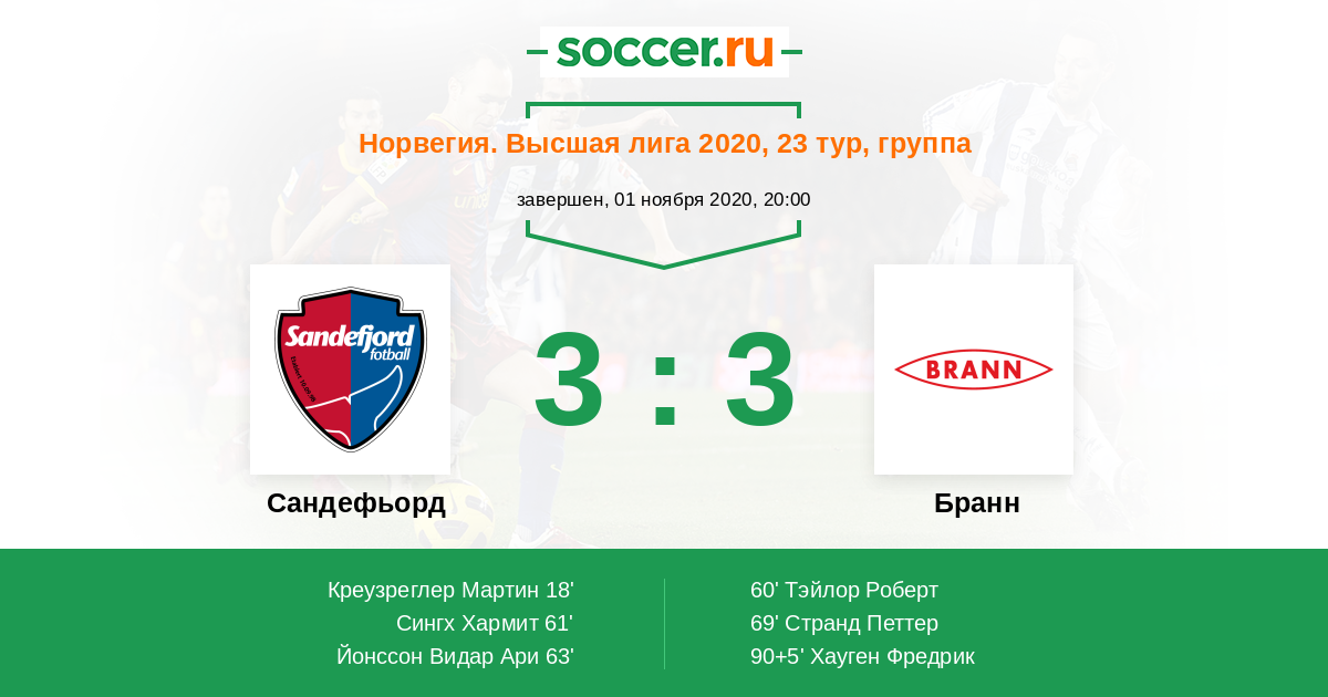 Сандефьорд - Бранн: обзор матча 1 ноября 2020