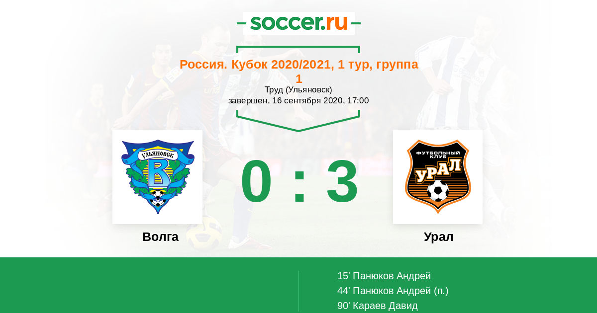 Волга - Урал: обзор матча 16 сентября 2020