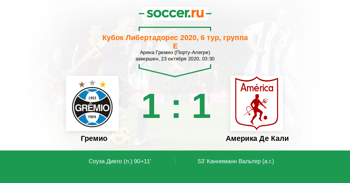 Гремио - Америка Де Кали: обзор матча 23 октября 2020