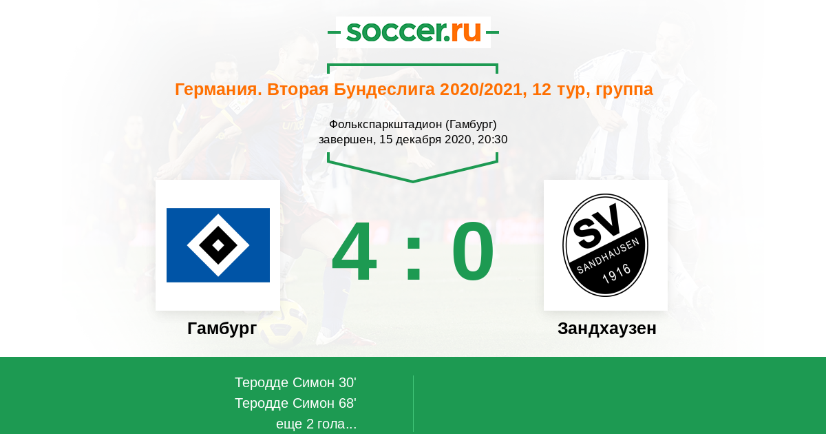 Гамбург - Зандхаузен: обзор матча 15 декабря 2020