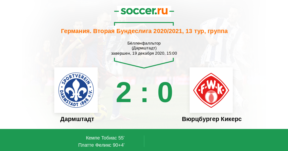 Дармштадт - Вюрцбургер Кикерс: обзор матча 19 декабря 2020