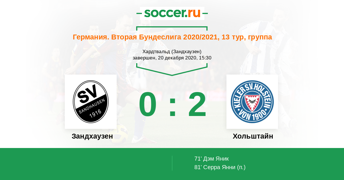 Зандхаузен - Хольштайн: обзор матча 20 декабря 2020