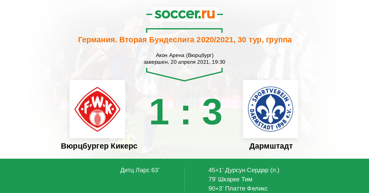 Вюрцбургер Кикерс - Дармштадт: обзор матча 20 апреля 2021