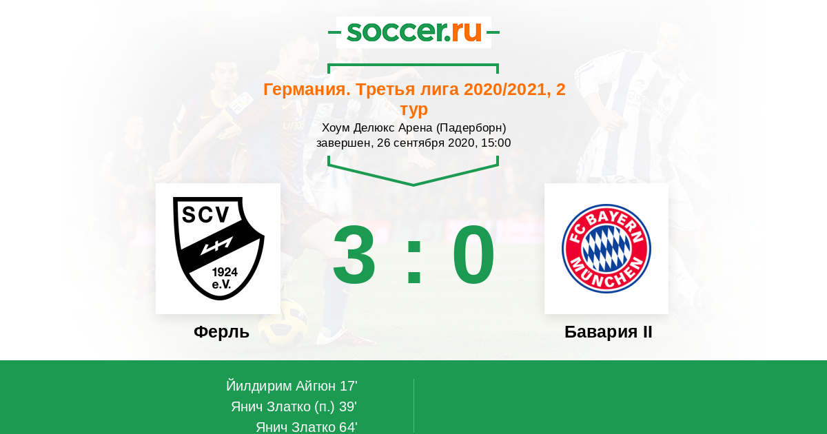 Ферль - Бавария II: обзор матча 26 сентября 2020