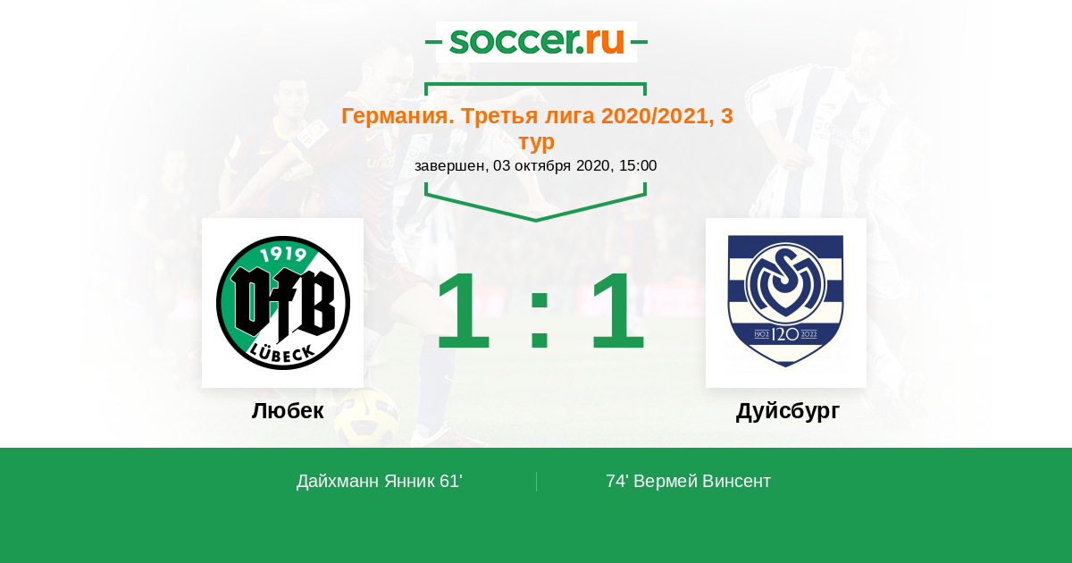 Любек - Дуйсбург: обзор матча 3 октября 2020