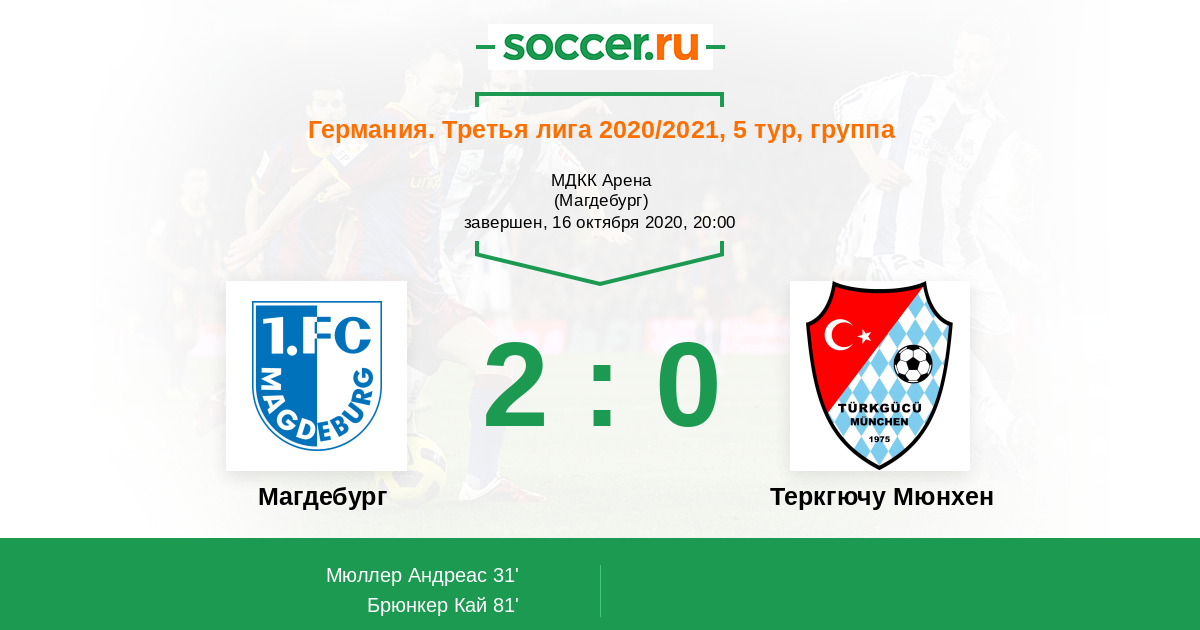 Магдебург - Теркгючу Мюнхен: обзор матча 16 октября 2020