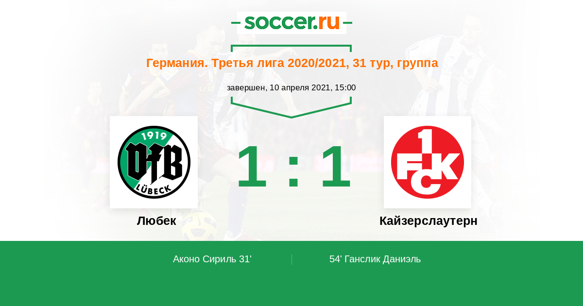 Любек - Кайзерслаутерн: обзор матча 10 апреля 2021