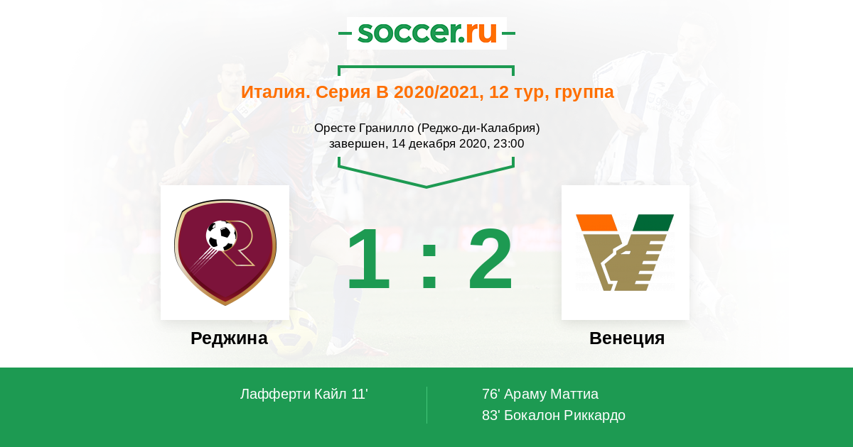 Реджина - Венеция: обзор матча 14 декабря 2020