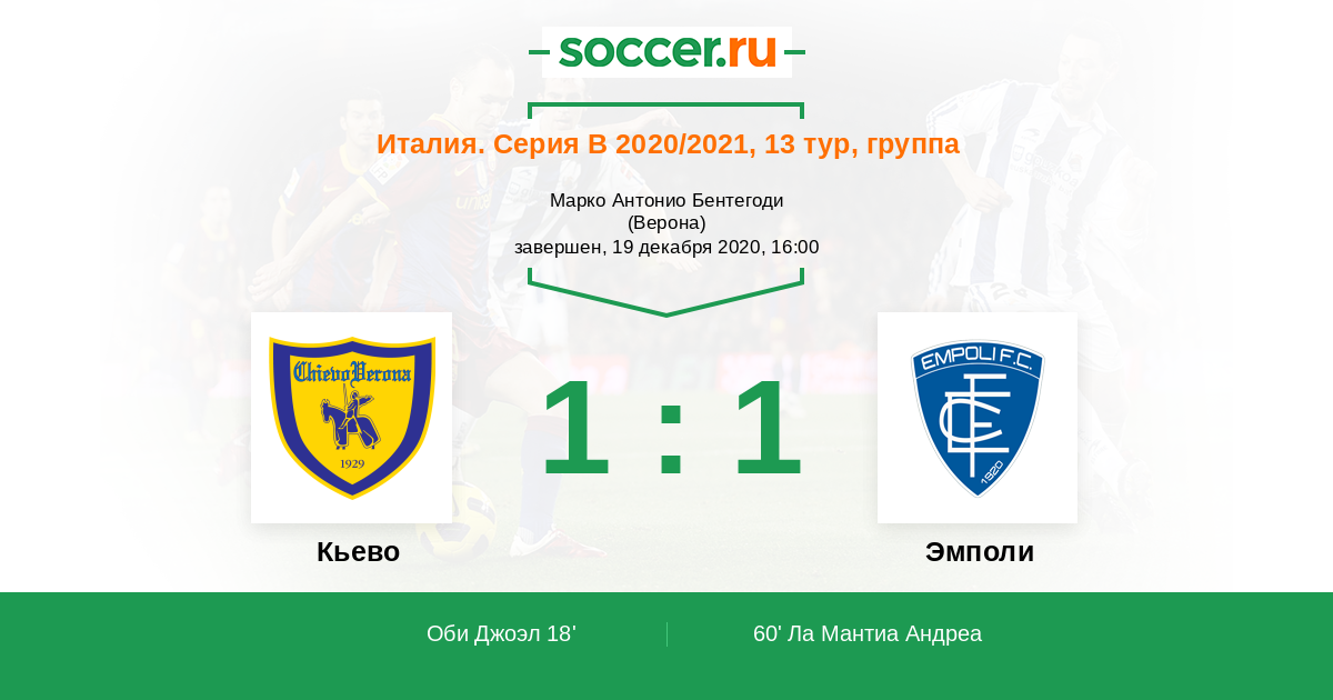 Кьево - Эмполи: обзор матча 19 декабря 2020