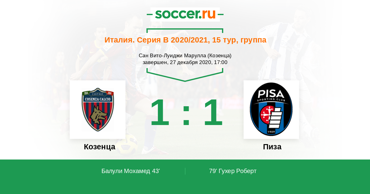 Козенца - Пиза: обзор матча 27 декабря 2020