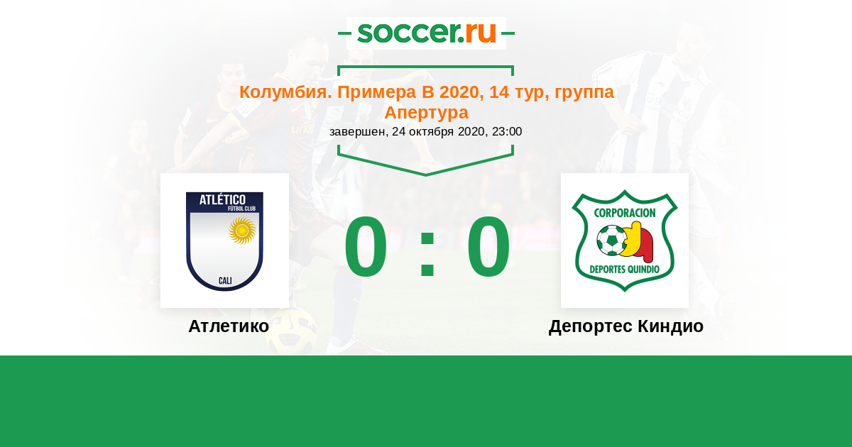 Атлетико Кали - Депортес Киндио: обзор матча 24 октября 2020