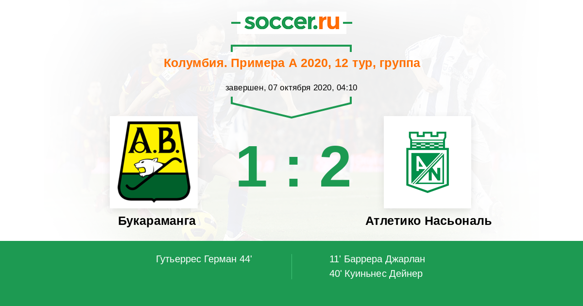 Букараманга - Атлетико Насьональ: обзор матча 7 октября 2020