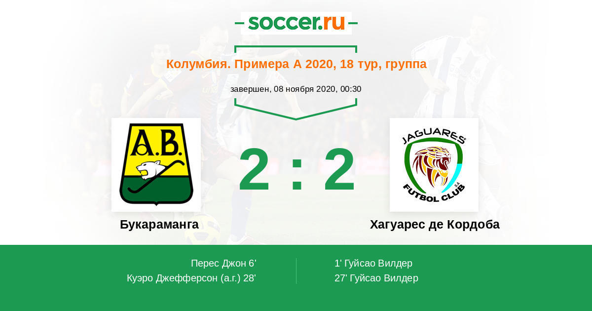 Букараманга - Хагуарес де Кордоба: обзор матча 8 ноября 2020
